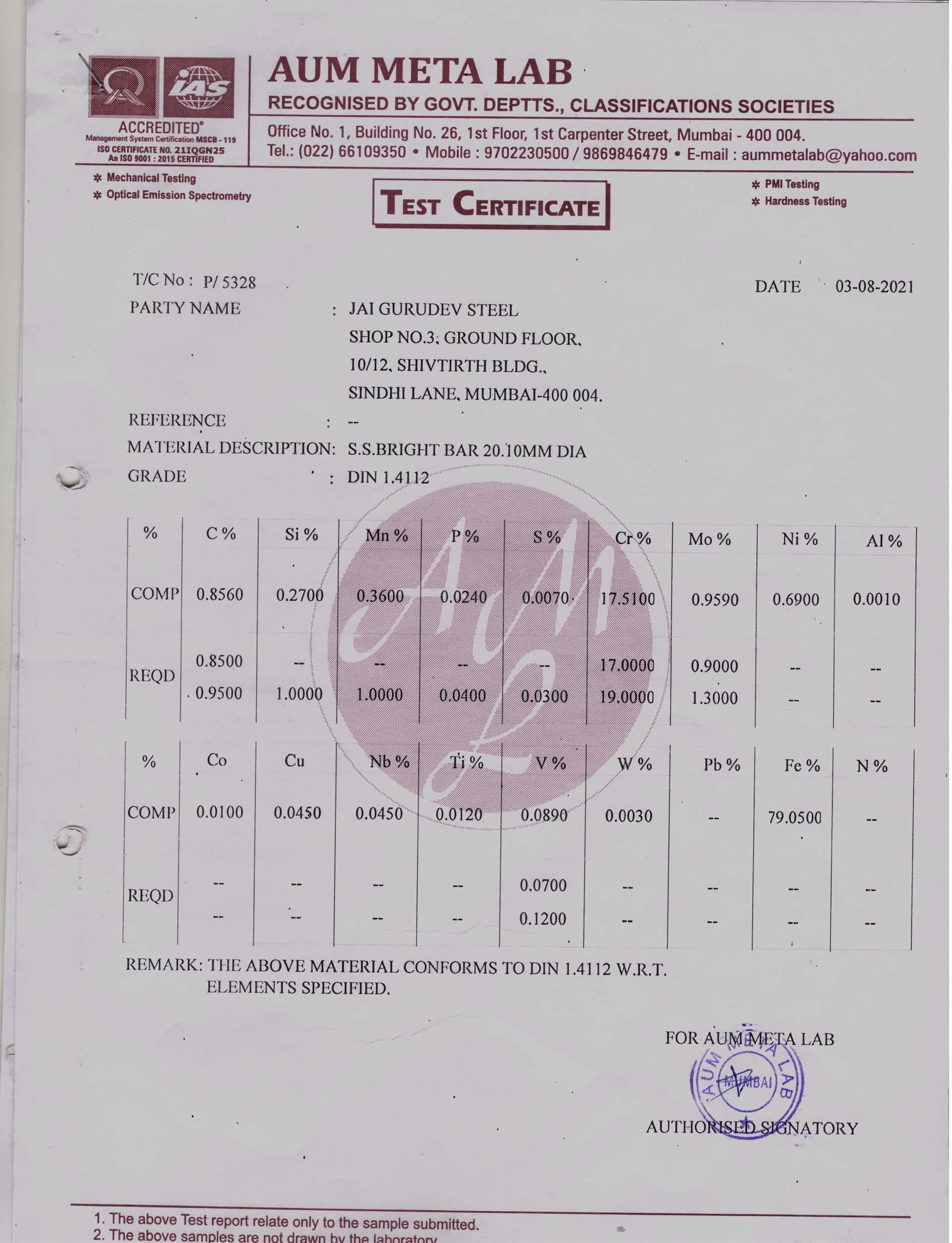 Quality assurance at Jai Gurudev Steel (Since 2005) begins with a thorough understanding of the client's needs and continues until the customer is completely satisfied with the goods and services offered. Quality Control procedures have been carefully defined and are being strictly followed.